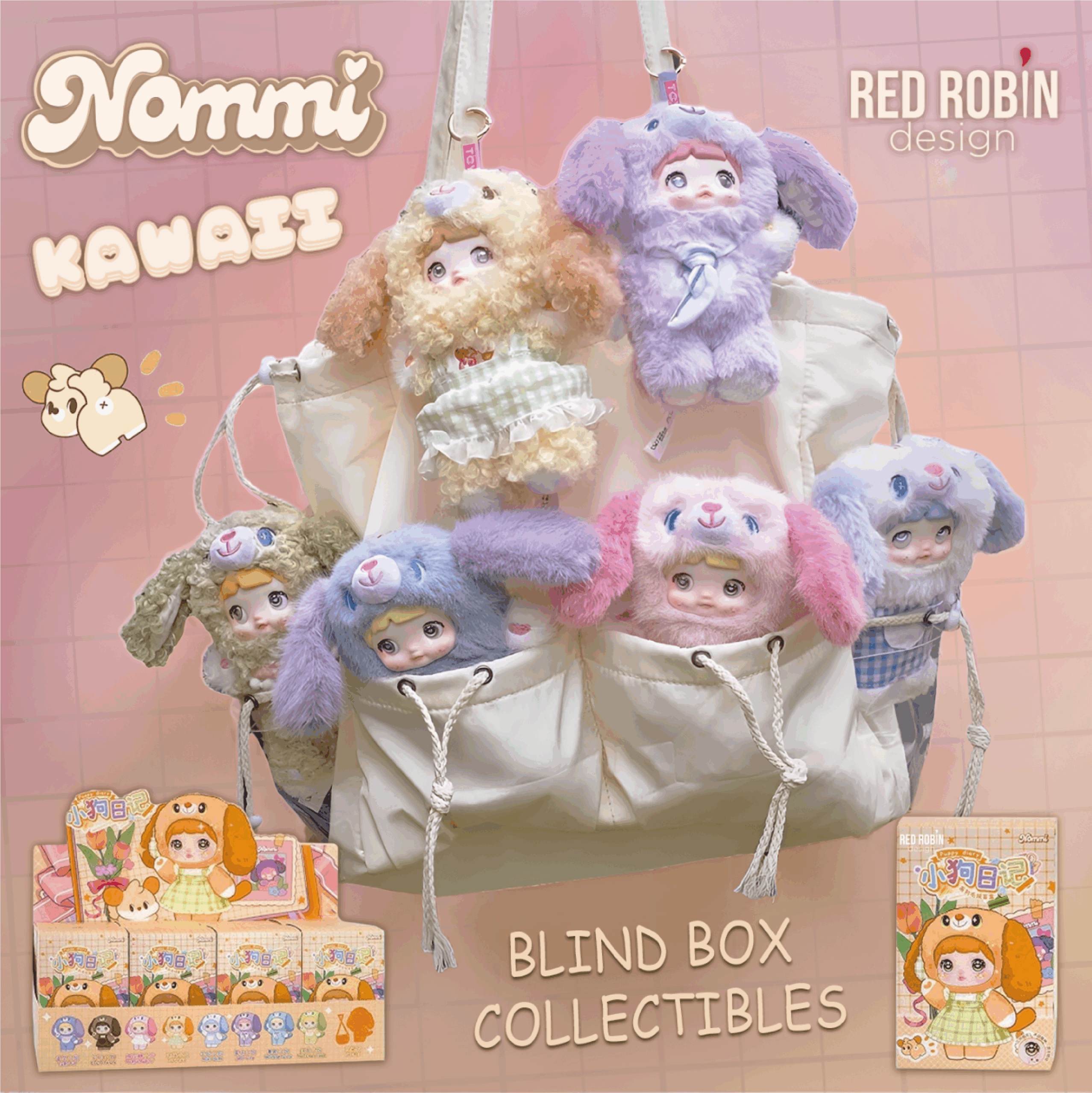 NOMMI: Blind box Vinyl-plush kawaii hybrids with glassy sparkle eyes. Collect, cuddle, scream.